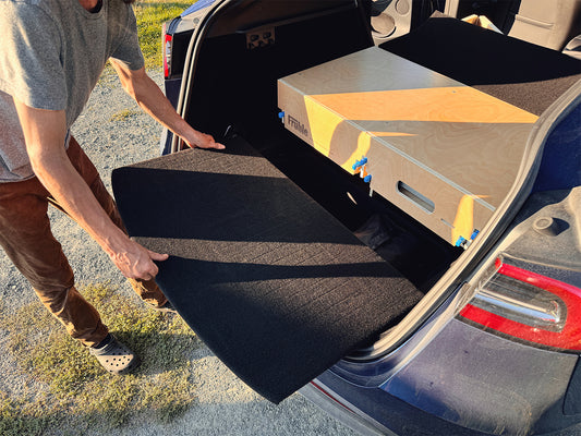 It’s a modular, easy-to-install bed and storage system that fits your Tesla's rear cabin. At Fruble, we engineer platforms that perfectly fit Tesla and Rivian vehicles.