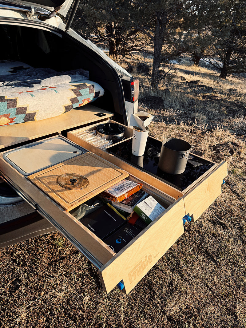 At Fruble, we seek to create products that inspire outdoor adventures. Thoughtfully designed, our camping and storage solutions complement the unique capabilities of EVs. Whether you're embarking on a weekend camping trip or a cross-country adventure, our products are crafted to enhance your experience on the road.