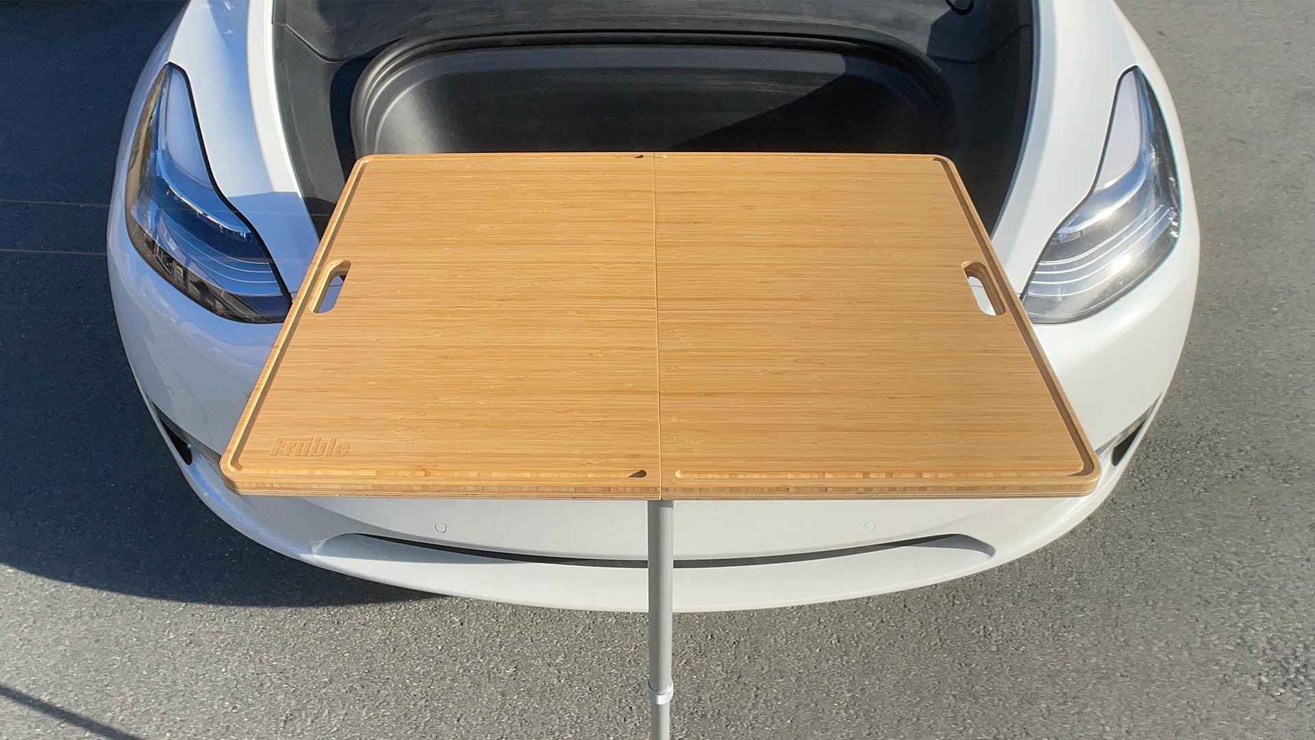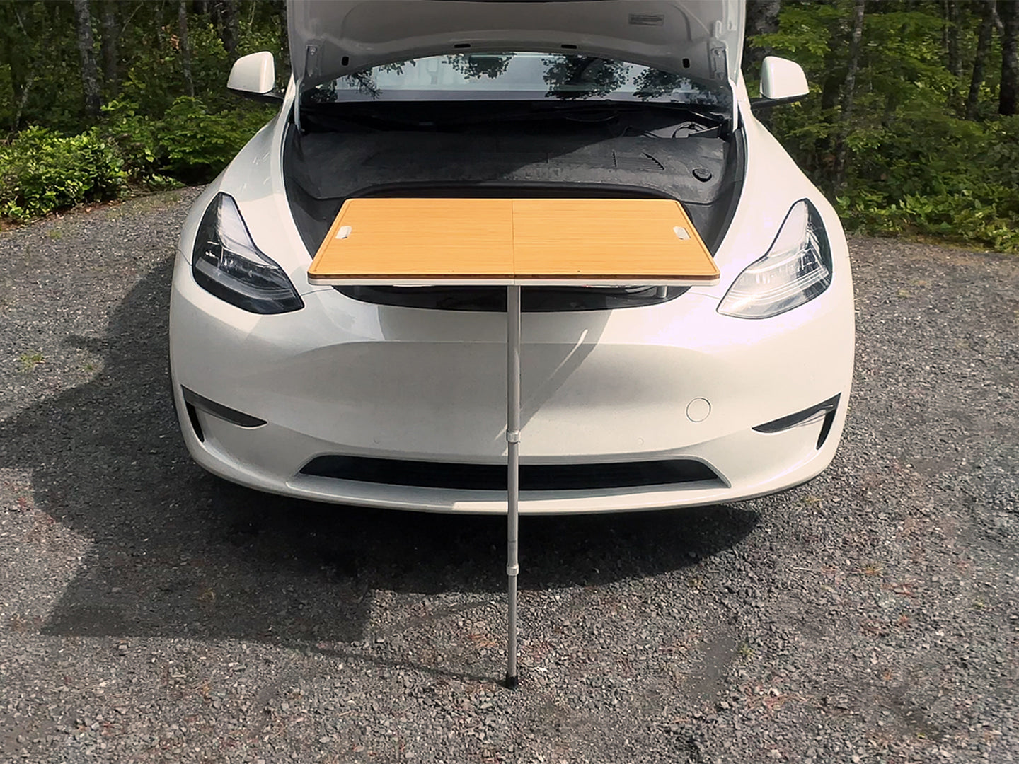The Frunk (and trunk) Table is fitted with a bottle opener and garbage bag holders for your outdoor adventures. Designed and Crafted in British Columbia, Canada.